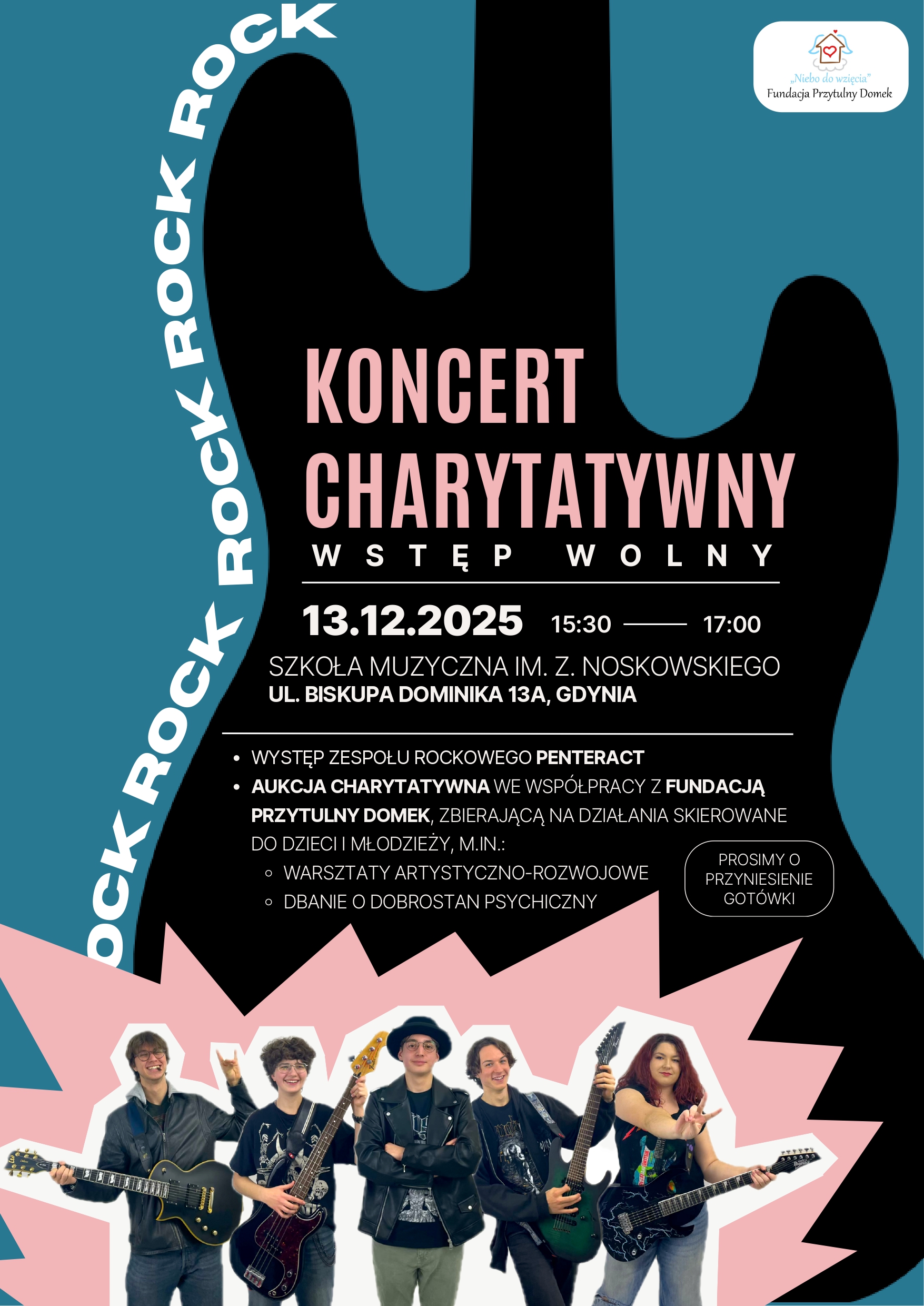 Zapraszamy na koncert charytatywny, na którym wystąpi zespół Penteract – uczniowie liceum, młodzi muzycy o wielkich sercach i ogromnej pasji!