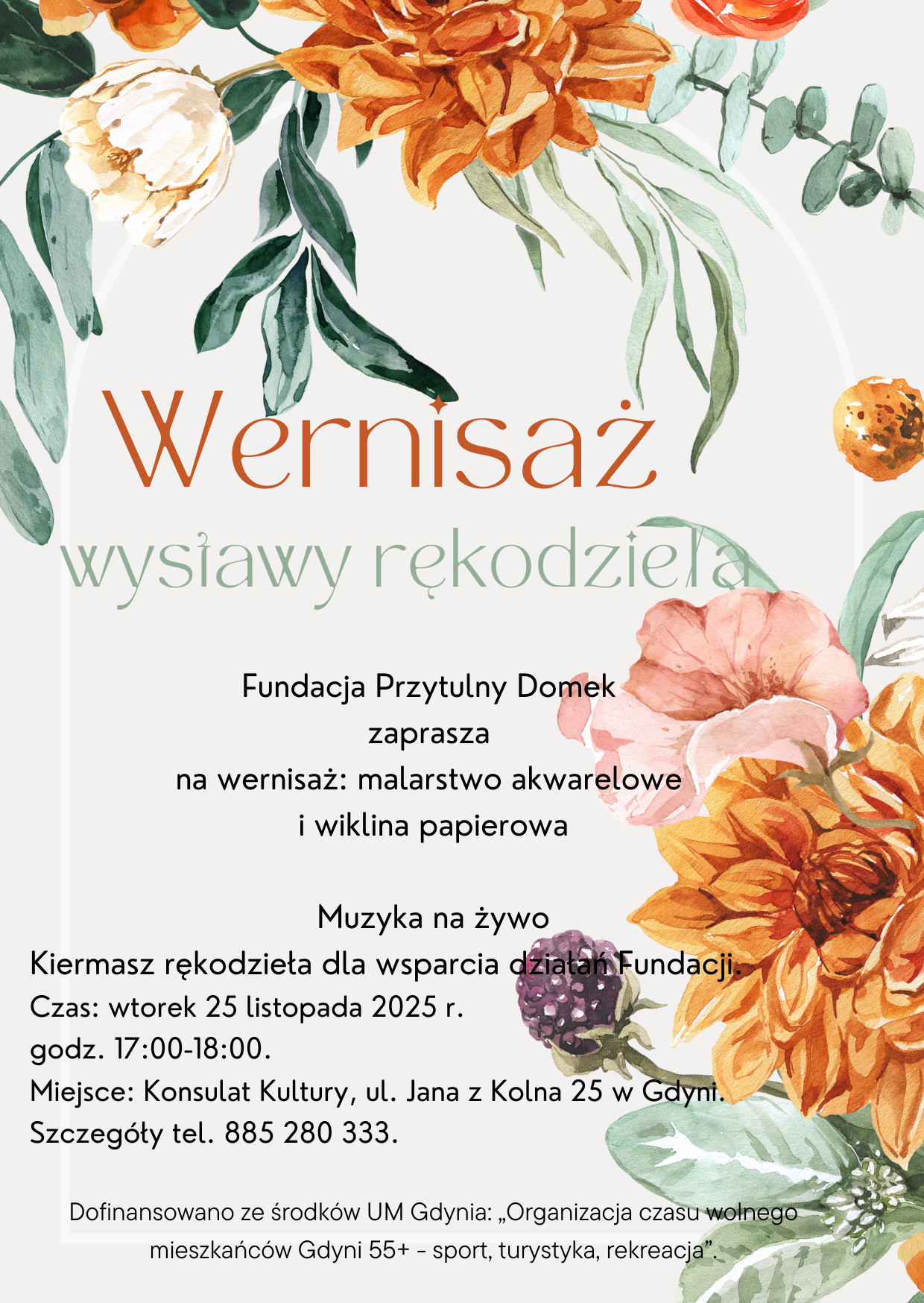 Fundacja Przytulny Domek zaprasza na wyjątkowe spotkanie ze sztuką i rękodziełem. W programie: malarstwo akwarelowe i wiklina papierowa – delikatne, pełne pasji prace lokalnych twórców.